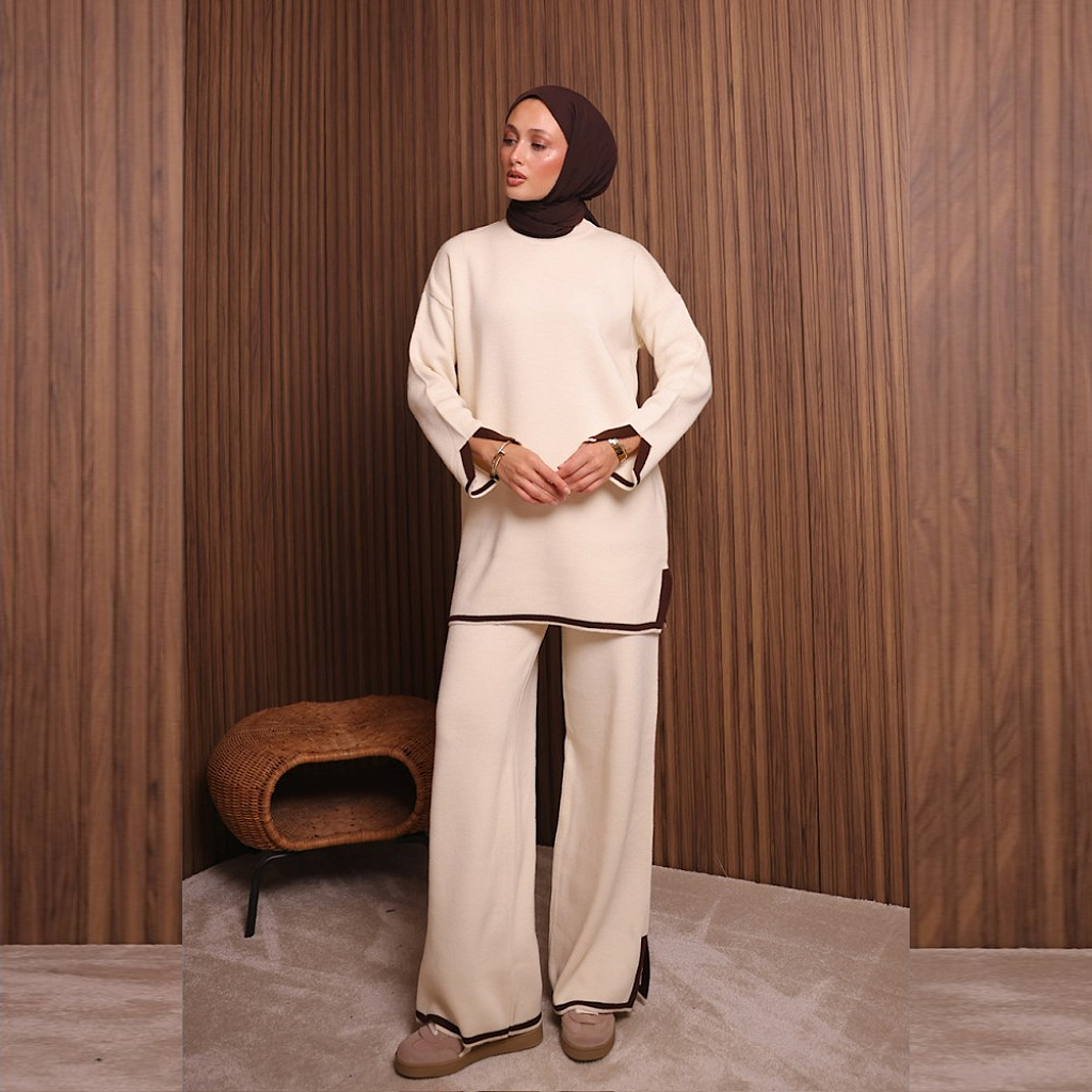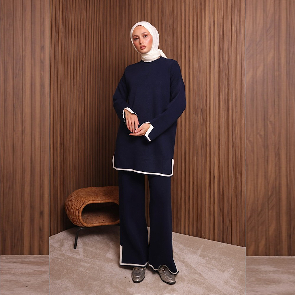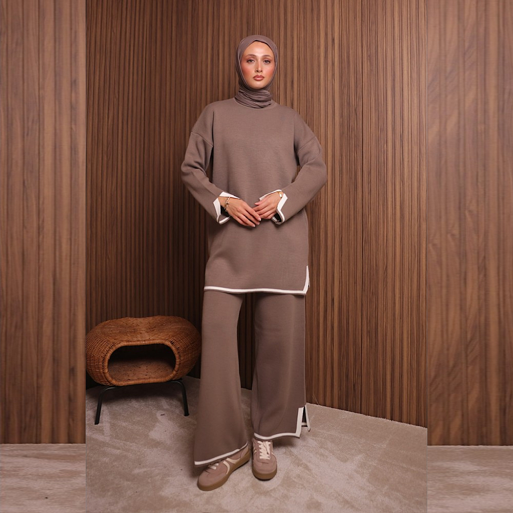 Ensemble en tricot de haute qualité importé de Turquie. Conçu pour allier confort et élégance, il garde sa forme et sa douceur même après plusieurs lavages. Idéal pour un look moderne et modeste au quotidien