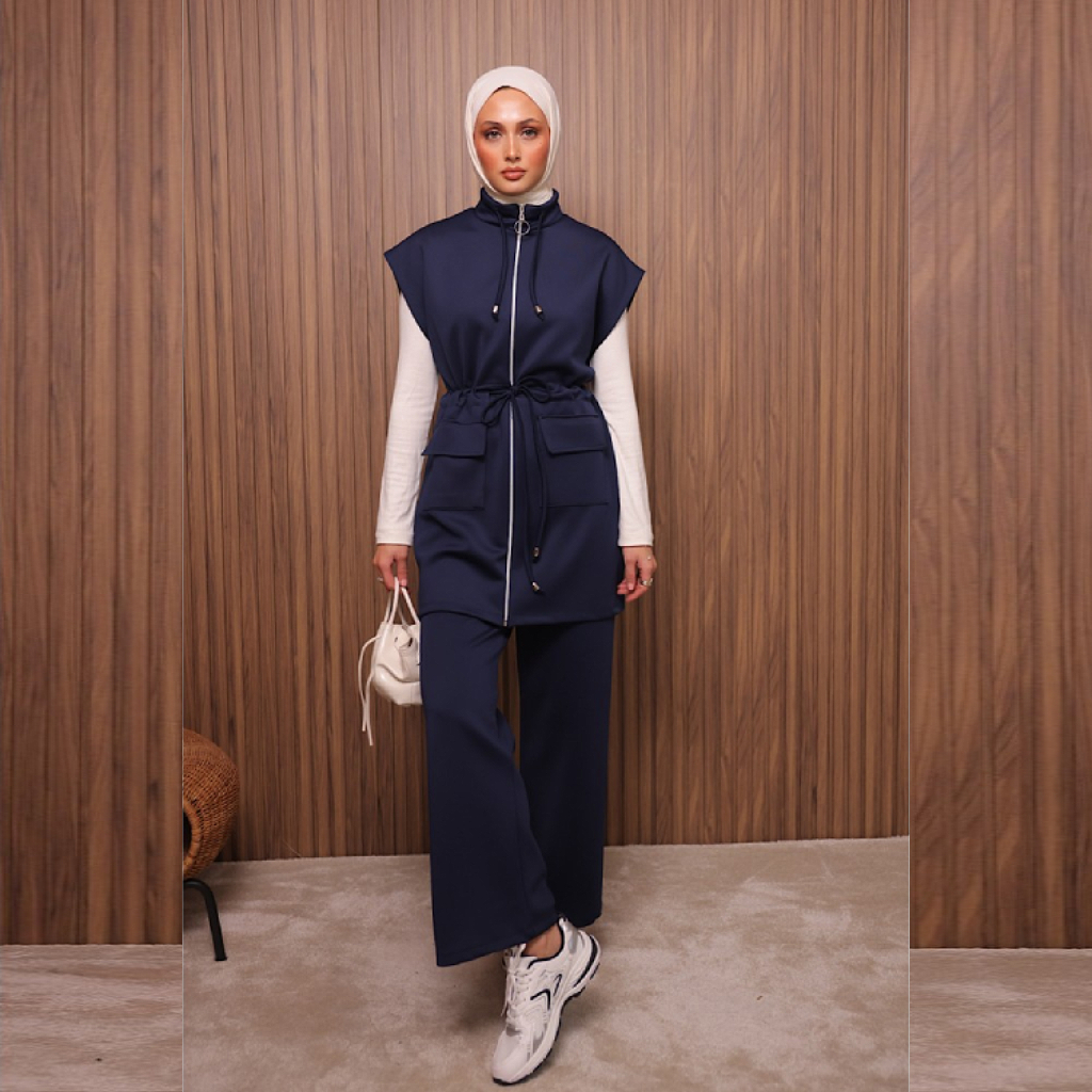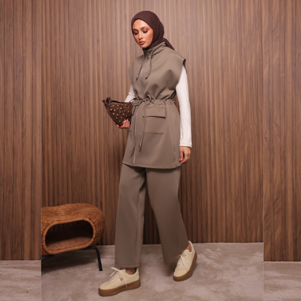 Ensemble tendance composé d’un gilet sans manches à cordon ajustable et d’un pantalon large assorti. Importé de Turquie avec une finition de qualité, il reste impeccable même après plusieurs lavages. Idéal pour un style urbain chic et confortable